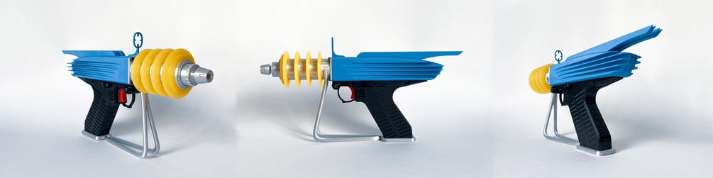 The replica functions similarly to the game version, randomly playing sound and light effects for a "close shot" or "long-distance shot" with a 50/50 chance every time you press the trigger.